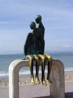 La Nostalgia is a beautiful sculpture created by Ramiz Barquet of the silhouette of a man and a woman. Inspired by love for his wife Nelly, the two figures gaze off toward the ocean and ponder life in Puerto Vallarta. It is said to be placed at the very site where the Barquet's came to watch the sunset in solitude and reflection. At night special lights that reflect its patina illuminate the famous monument. |